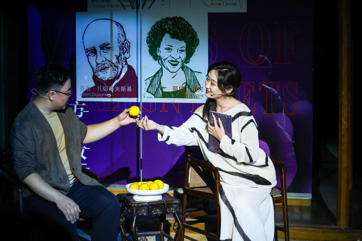 来自不同国家的诗人也登上舞台,依次朗诵了自己的代表作品。尼古拉・马兹洛夫的《新大陆》、罗兰多・卡坦的《我身旁有人读一本汉语书》、哈维尔・亚萨孔多尔的《尼克鲁潘帕》以及李戈的《跨越时空的桥梁》,他们带着巴尔干半岛的冷峻、加勒比的热情、安第斯山脉的高大、拉美大陆的哲思跨越山海而来,令观众感受到世界诗歌的丰富多彩和文化的多元融合。