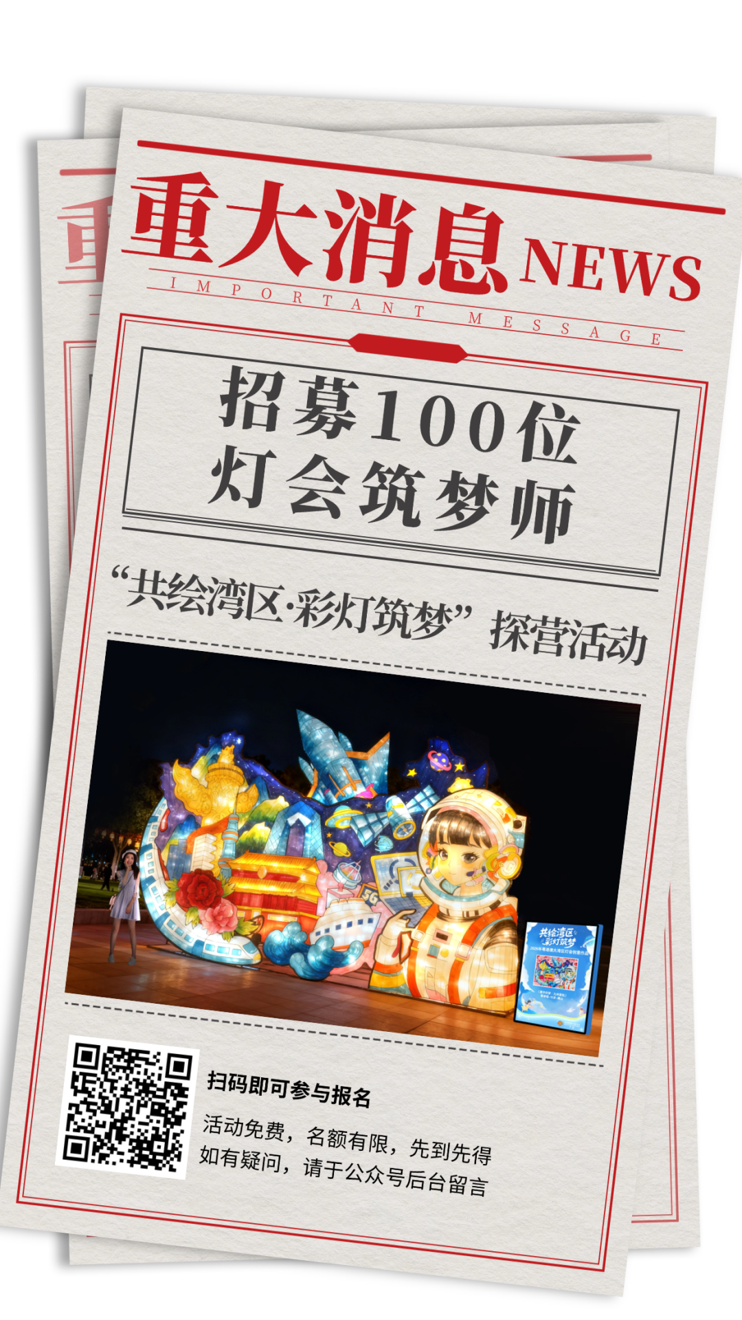 关注“大湾区灯会官方”公众号,回复“彩灯研学”获取报名链接。